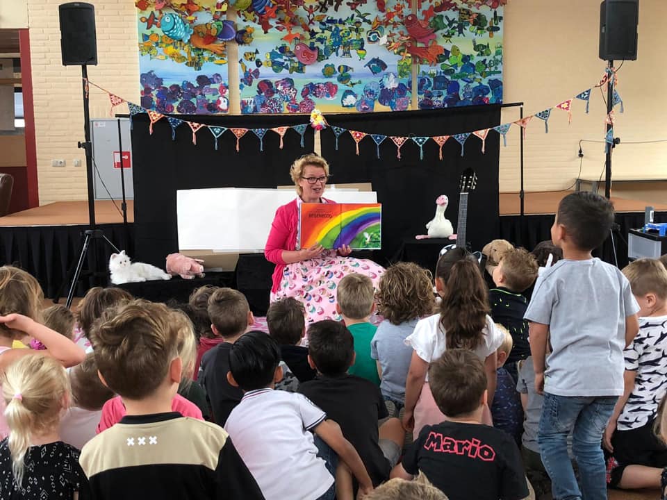 " Deze voorstelling was zó grappig! Hij sloot precies aan bij de beleving van onze kinderen en Tante Thee haakte in op alles wat er vanuit de groep kwam! Ook de juffen hebben erg genoten en werden geïnspireerd door de creativiteit en het enthousiasme. Dankjewel."