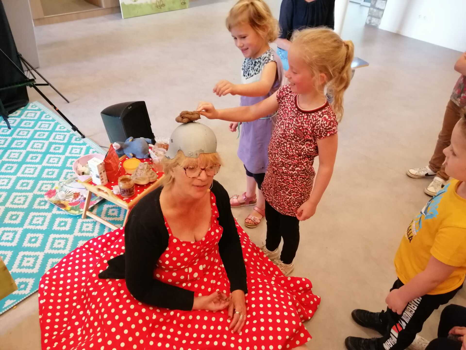 "Een schot in de roos! Hoewel veel kinderen het verhaal al kenden, bleef het door de unieke manier van spelen door Tante Thee zeer boeiend. Het namaken van, en het benoemen van de poep vonden wij hilarisch."